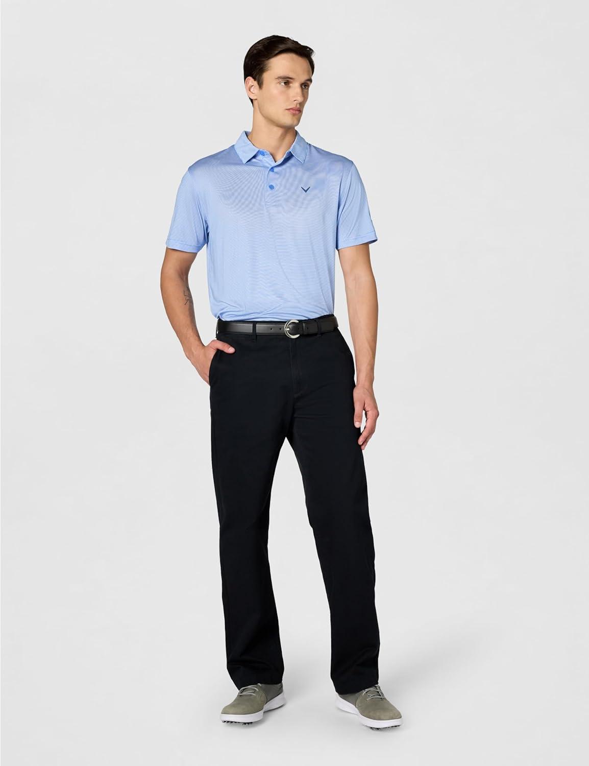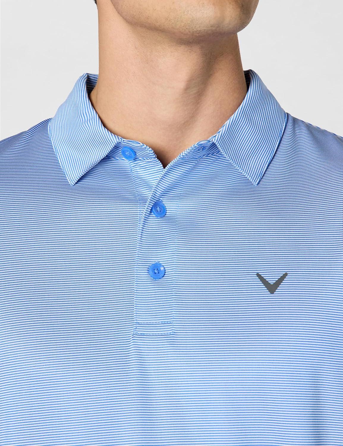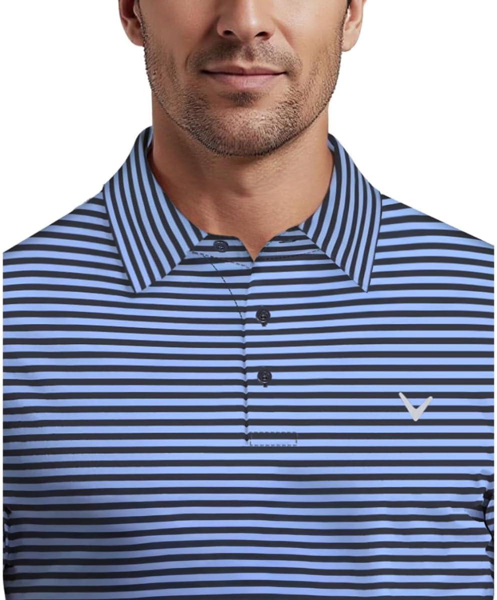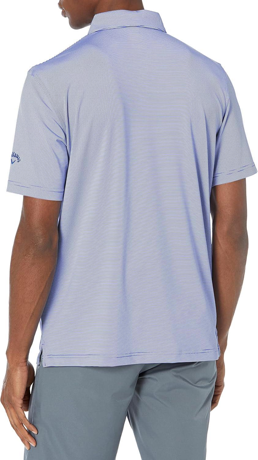 Callaway Mens Fine Line Stripe Short Sleeve Stretch Golf Polo, Moisture-Wicking, Sun Protection (Available in Big & Tall)(Infinity)