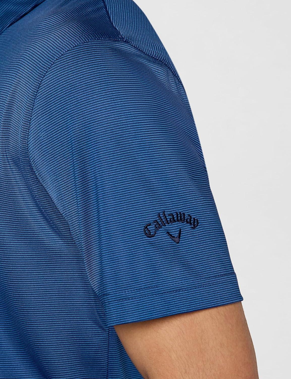 Callaway Mens Fine Line Stripe Short Sleeve Stretch Golf Polo, Moisture-Wicking, Sun Protection (Available in Big & Tall)(Marina)