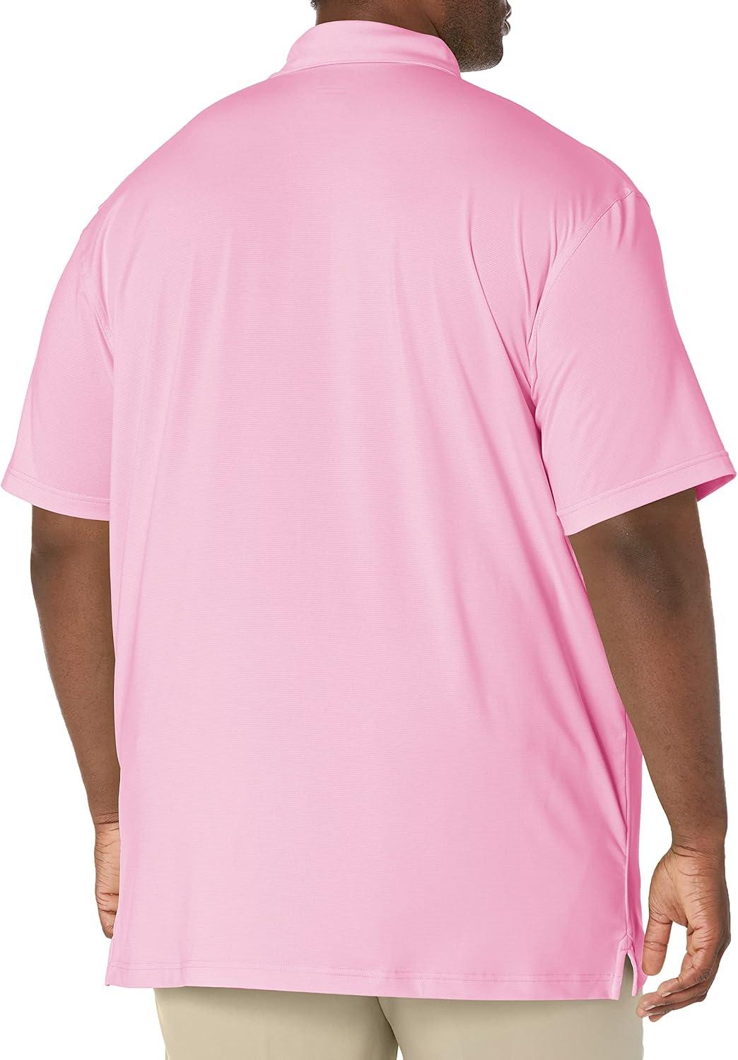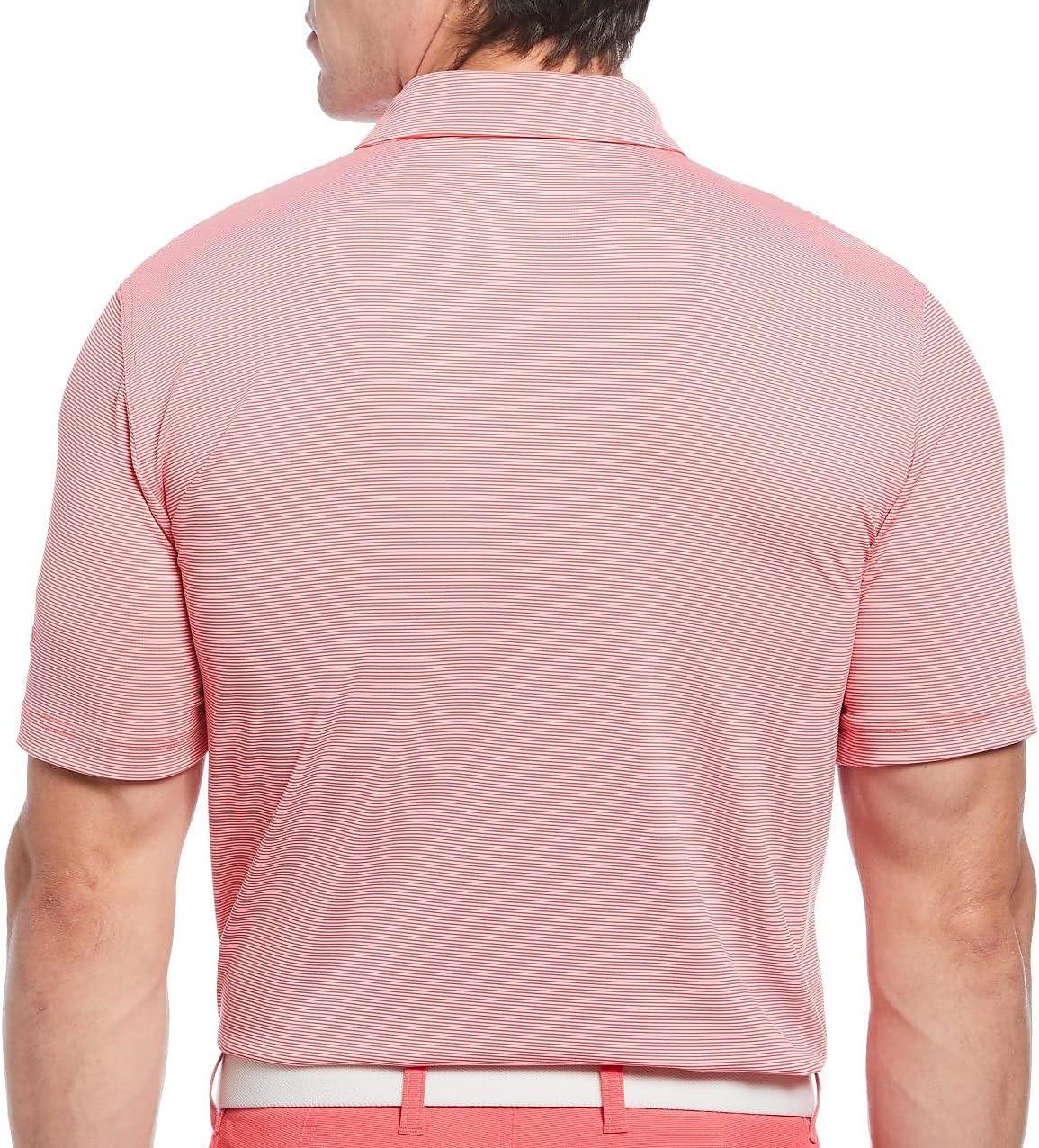 Callaway Mens Fine Line Stripe Short Sleeve Stretch Golf Polo, Moisture-Wicking, Sun Protection (Available in Big & Tall)(Pink Sunset)