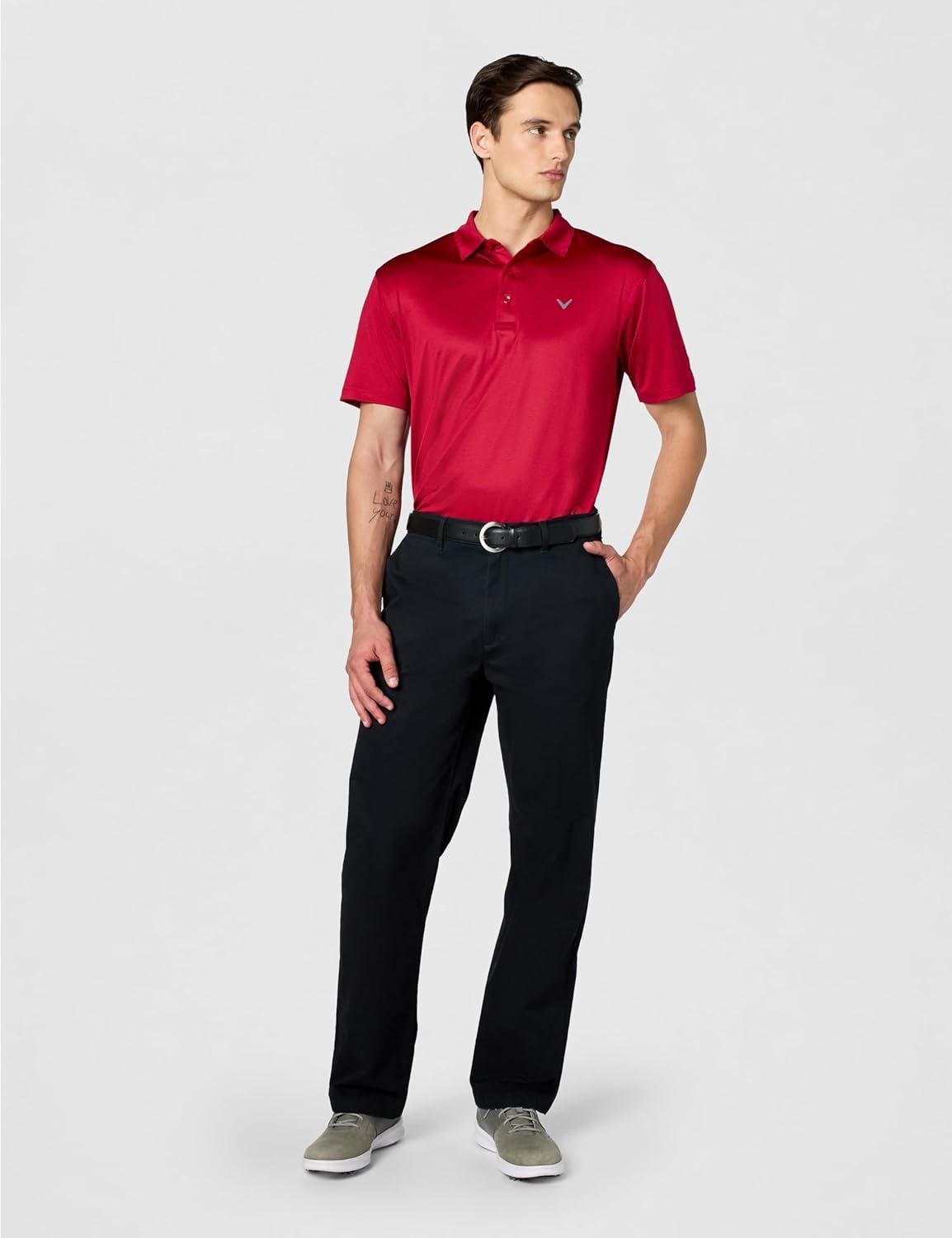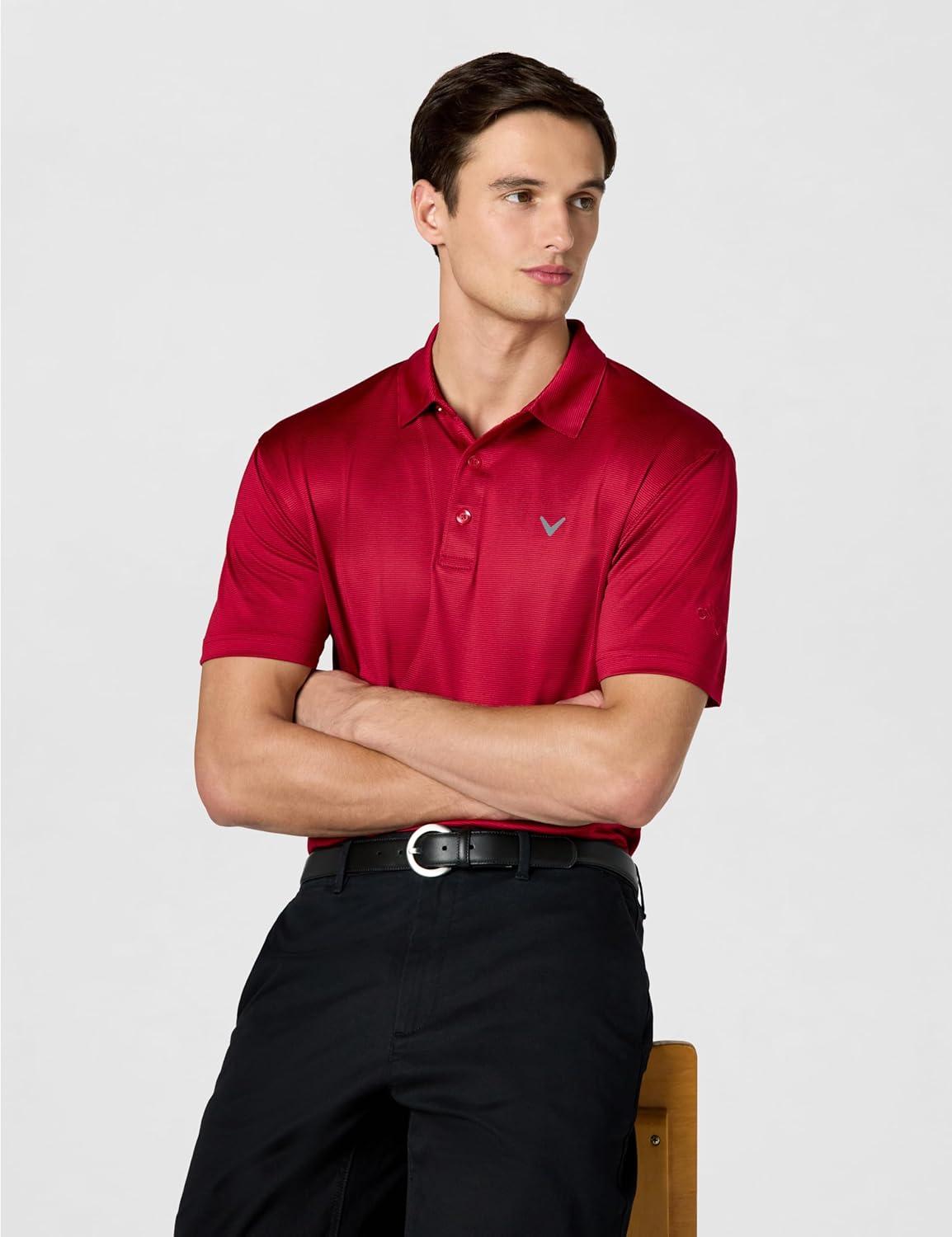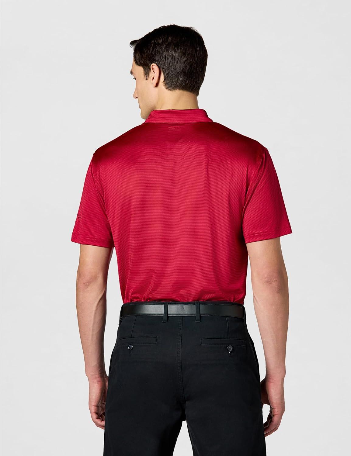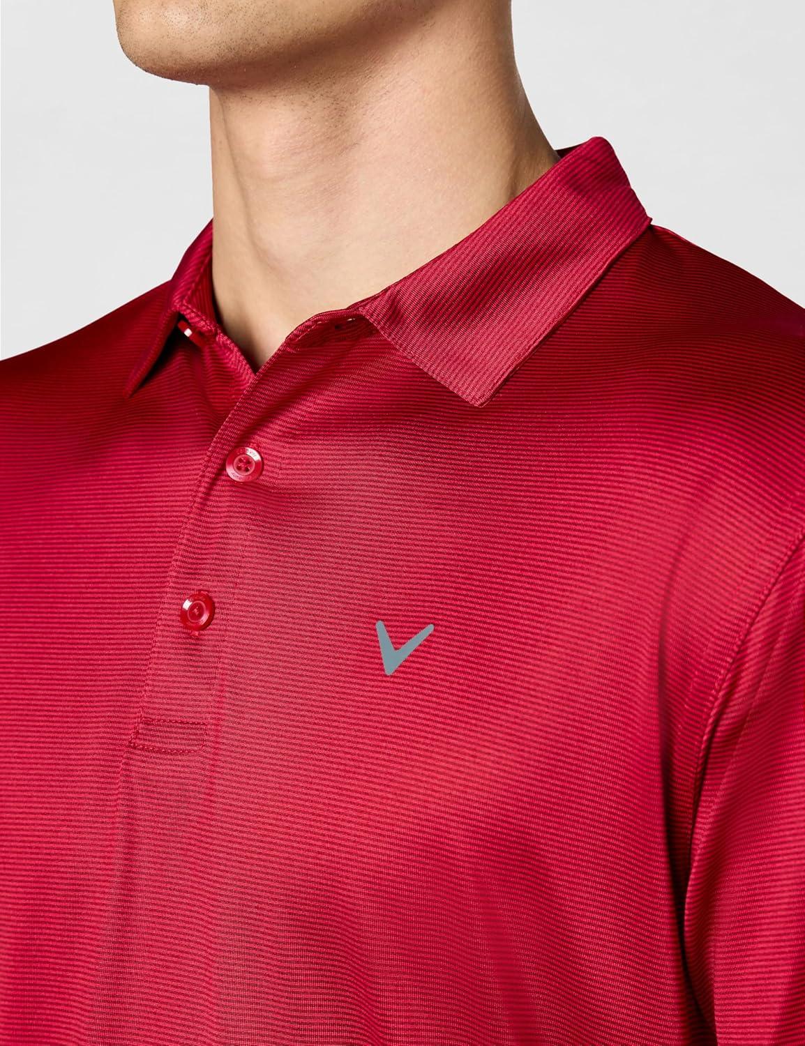 Callaway Mens Fine Line Stripe Short Sleeve Stretch Golf Polo, Moisture-Wicking, Sun Protection (Available in Big & Tall)(Tango Red)