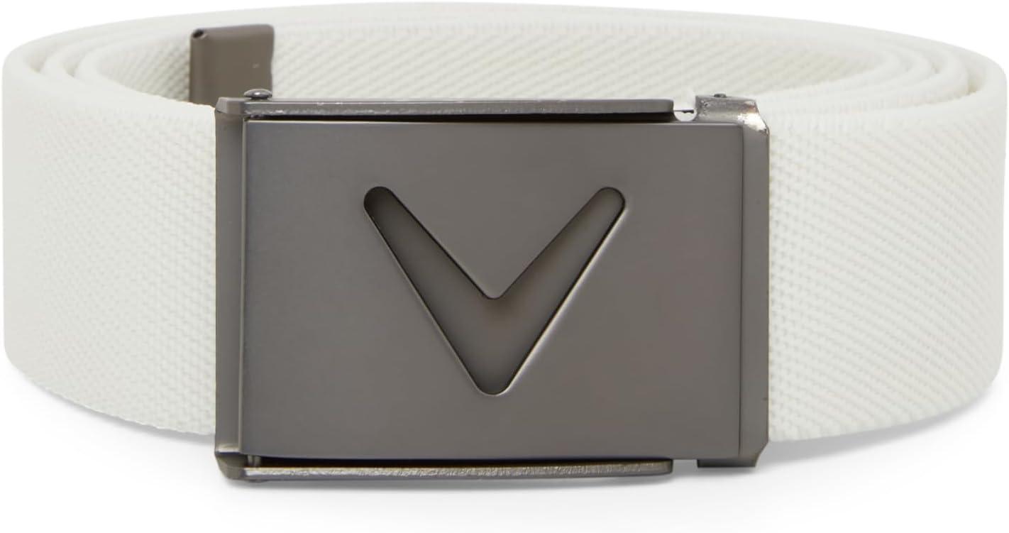 Callaway Men’s V-Logo Web Golf Belt with Durable Textured Stretch Material and Metal Tip Adjustable Buckle(Bright White)