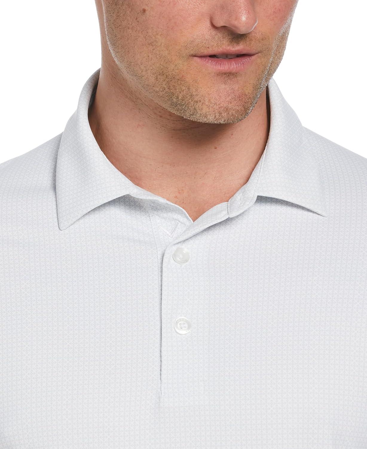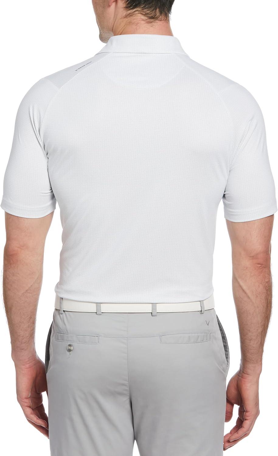 Callaway Mens Chevron Foulard Print Stretch Golf Polo, Stretch Seams, Sun Protection (Available in Big & Tall)(Bright White)