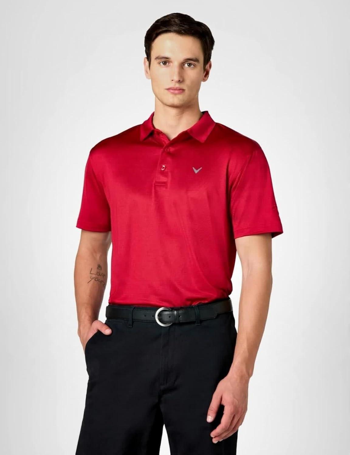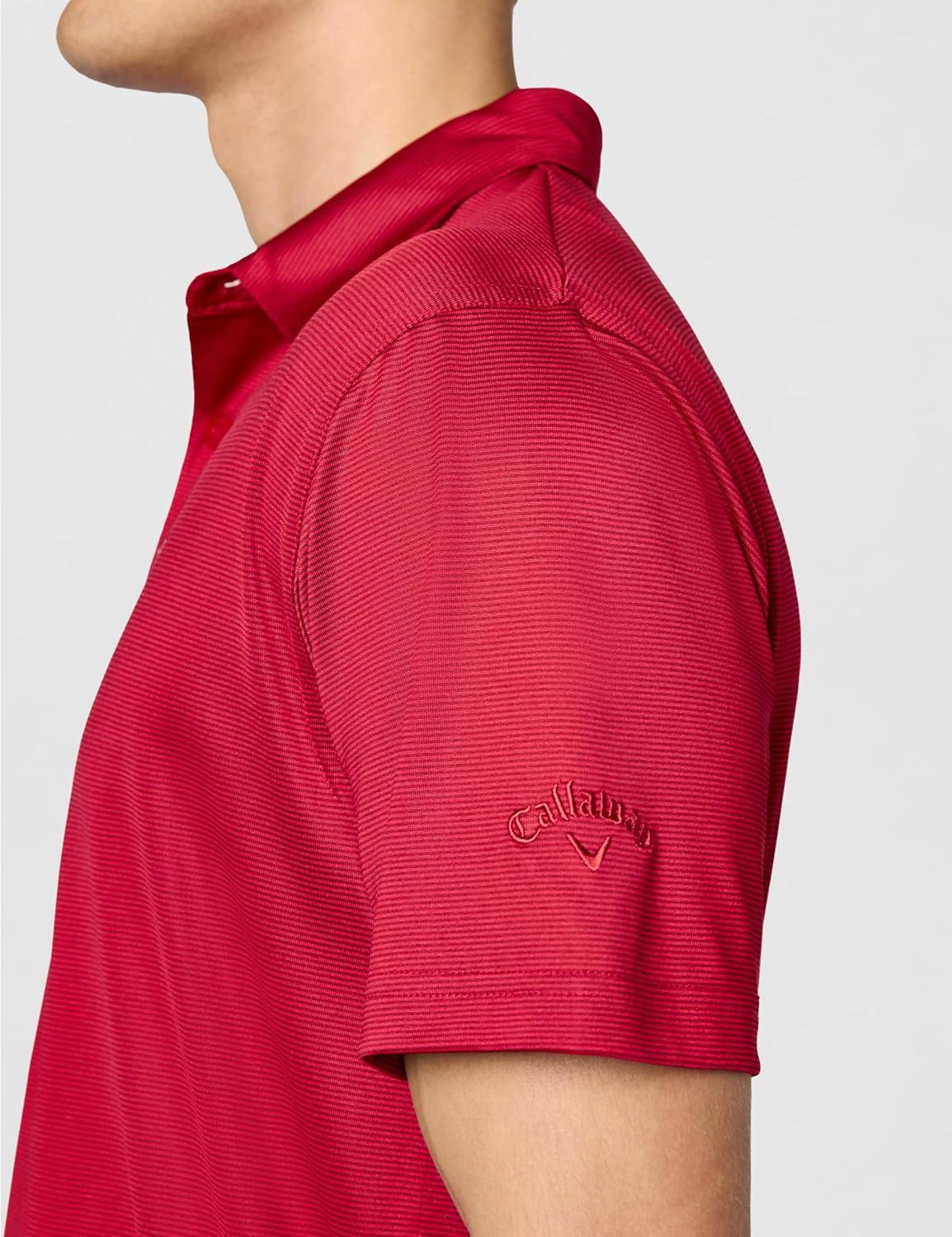Callaway Mens Fine Line Stripe Short Sleeve Stretch Golf Polo, Moisture-Wicking, Sun Protection (Available in Big & Tall)(Tango Red)
