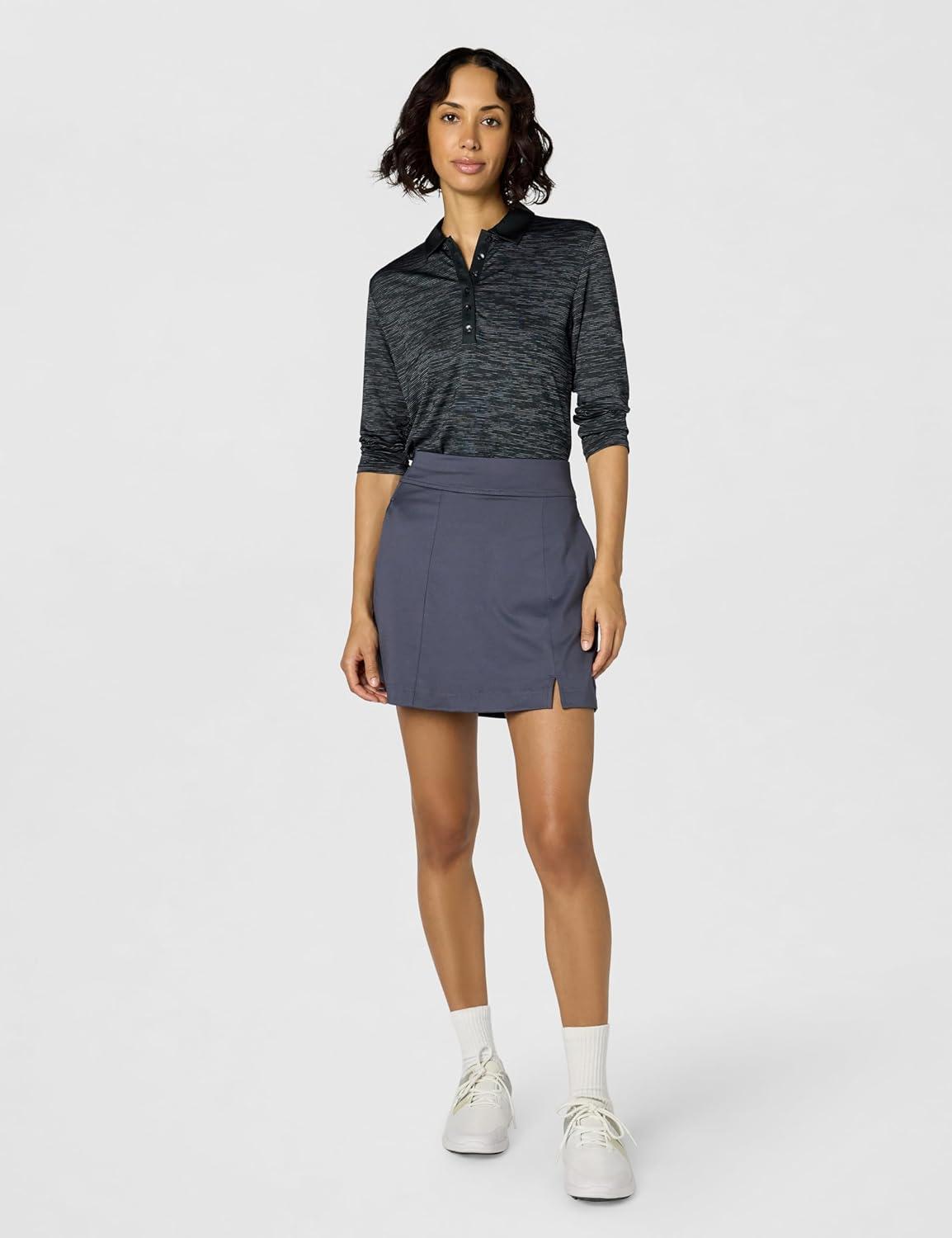 Callaway womens Swingtech™ 3/4 Sleeve Space Dye Golf Polo Shirt(Caviar Black)