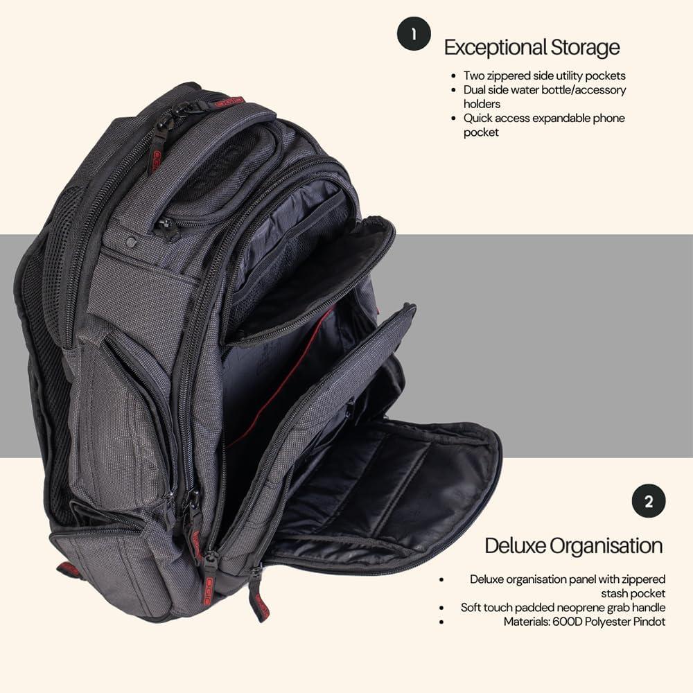 Capacity-1800 Cubic Inches. Recommended Use-Business, College, School, Golf. Laptop Pocket-15.5 H x 10.5 W x 1 D inches.Sewn-in EVA molded compartment that protects your fragile items and valuable electronic devices